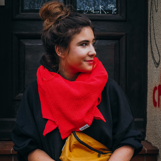 Der hochwertige Musselin-Stoff ist sehr angenehm zu tragen, liegt weich auf der Haut und wirkt dabei angenehm wärmend – perfekt für Spaziergänge, unterwegs oder gemütliche Stunden zu Hause.
